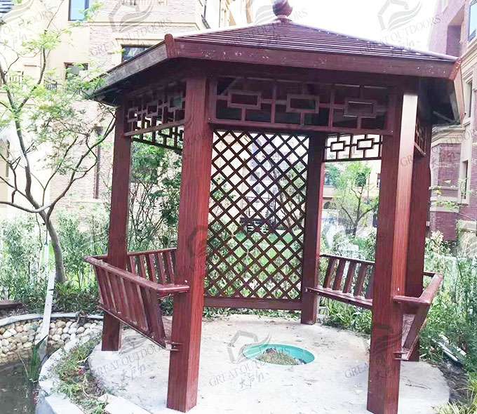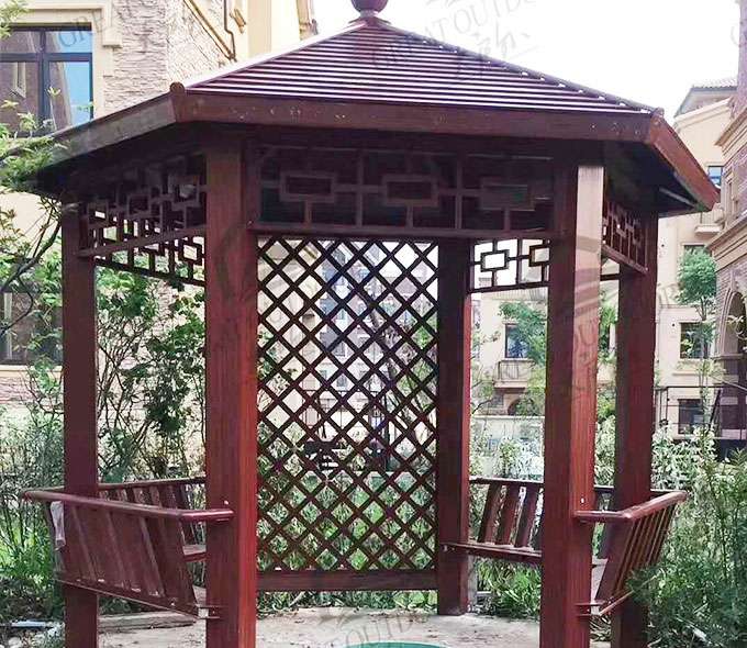 合肥健峰家庭清洁与保养有限公司凉亭系列产品是采用高强度铝合金为原材料,经酸洗铬化,电泳或静电喷涂,木纹转印处理后,精密定制设计,保障安装。它具有防水防潮,不膨胀不变形,防腐蚀,具有逼真的木质感。成为别墅住宅及市政园林等建筑美丽的风景。
