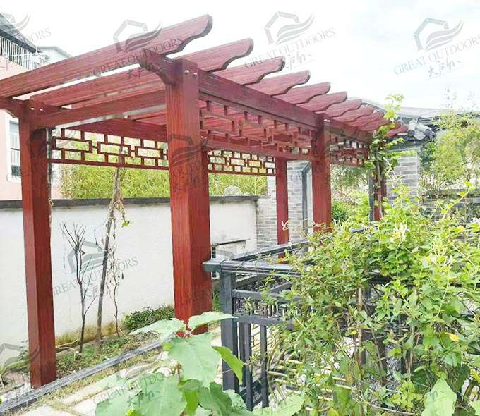 合肥健峰家庭清洁与保养有限公司花架系列产品是采用高强度铝合金为原材料,经酸洗铬化,氧化电泳或静电喷涂,木纹转印处理后,精密定制设计,保障安装。它具有防水防潮,不膨胀不变形,防腐蚀,具有逼真的木质感。成为别墅住宅及市政园林等建筑美丽的风景,还能代替廊子提供遮阴纳凉功能,同时还能用花架作园林大门使用。