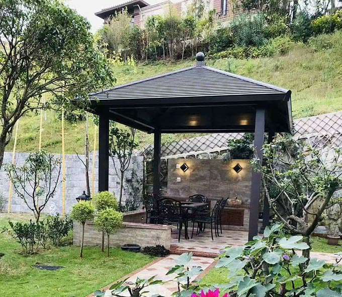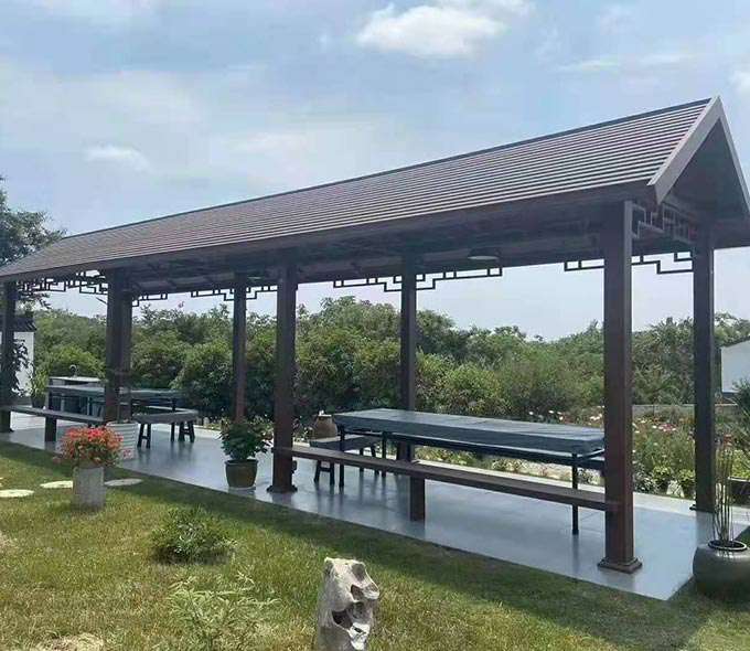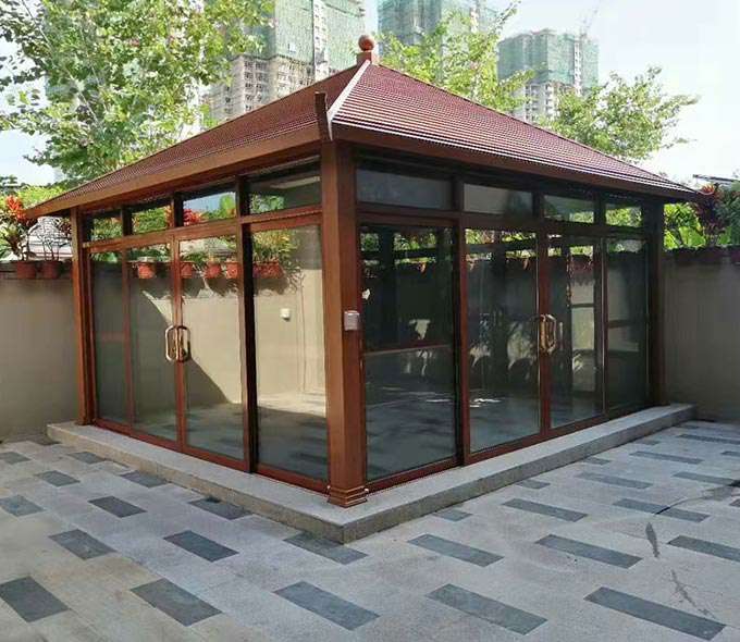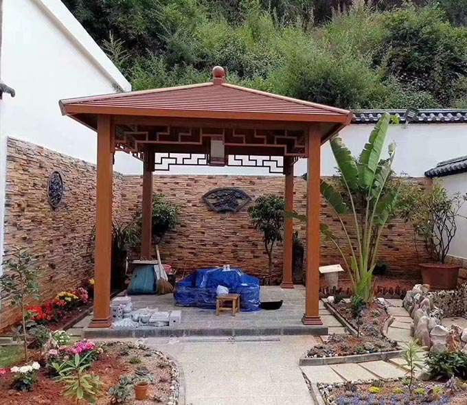 合肥健峰家庭清洁与保养有限公司凉亭系列产品是采用高强度铝合金为原材料,经酸洗铬化,电泳或静电喷涂,木纹转印处理后,精密定制设计,保障安装。它具有防水防潮,不膨胀不变形,防腐蚀,具有逼真的木质感。成为别墅住宅及市政园林等建筑美丽的风景。